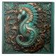 Seepferd, Aquamarin, Kupfer und Meereswasser Fliese