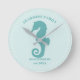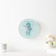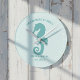 Ein aquamarines Seepferd Strandhaus Mauer Uhr für Sie gewartet, um Ihren Familiennamen und das Jahr etabliert hinzuzufügen. Wenn man die Küstenstraße Liebe, dann ist das die Uhr für Sie