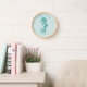 Ein aquamarines Seepferd Strandhaus Mauer Uhr für Sie gewartet, um Ihren Familiennamen und das Jahr etabliert hinzuzufügen. Wenn man die Küstenstraße Liebe, dann ist das die Uhr für Sie