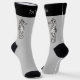 Stilisierte Schwarz-Weiß-Ikone eines Seepferds. Benutzerdefinierte Hintergrundfarbe. Benutzerdefinierte Farbe des oberen Streifens. Benutzerdefinierter Text auf jeder Socke.