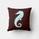 Teil der Ozeandekoration SEEPFERD blau auf braunem Kissen