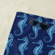 Stilisierte blaue Ikone eines Seepferds. Nahtloser Hintergrund.
