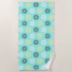 Strandtuch mit einem lustigen ozeanischen inspiriert Muster von Blume aus kleinen Seepferden in weiß, gelb und dunkel aqua auf einem hellen Hintergrund.