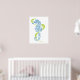 Seepferd dusk blau, Kalkgrün und Algen auf weißem Hintergrund Kinder Poster drucken.