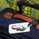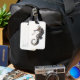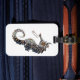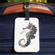 Zögern Sie nicht - Die beste Zeit, etwas zu kaufen ist, wenn Sie es sehen! Viel Spaß mit meinen Gepäckanhängern. Silhouette eines Seepferds, das mein eigenes urheberrechtlich geschütztes eines von einer Art gemustertem Hintergrund hat. Sehr trendig