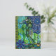 ein Seepferd in Braun, Grüntöne und Blues Set gegen blaue Mandalas mit silbernen Highlights.
