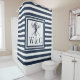Seepferd Monogram Navy Blue Striping Nautic Duschvorhang