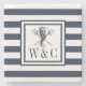 Seepferd Nautical Monogram Navy Blue Strip Steinuntersetzer