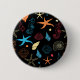 Fügen Sie etwas Sommerspass mit dem Meeresleben hinzu. Muscheln, Starfish & Seepferde auf schwarzem Hintergrund mit Rot, Orange und Blau.
