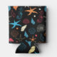 Fügen Sie etwas Sommerspass mit dem Meeresleben hinzu. Muscheln, Starfish & Seepferde auf schwarzem Hintergrund mit Rot, Orange und Blau.