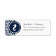 Seepferd Theme Navy Damask Rücksendeadressen-Aufkleber. Seepferd mit marineblauen Damast Muster Rücksendeadressen-Aufkleber.