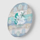 Seepferd und Beach Wood Nautical - Blue Aquamarin Große Wanduhr
