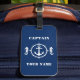 Seepferd mit Nautical Boat Anchor & Ihr Name oder Bootname mit Custom Captain Rank auf einem Personalisierten Blue Luggage Tag.