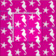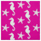 Seepferd und Seestern, weiß auf Fuchsienrosa Stoff