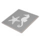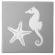 Seepferd und Seestern - weiß auf Silbergrau Fliese