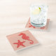 Seepferd und Seesterne - Korallenfarben Glasuntersetzer