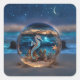 Seepferd und Starfish Unterwasserstrand Surreal Quadratischer Aufkleber