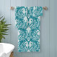 Dieses aquamarine, blau-weiße Damast-Muster hat eine Drehung an der Küste: Seepferde, Algen, Korallen und Muscheln sorgen für ein Unterwasserleben. Das Badehandtuch-Set eignet sich hervorragend für ein küstennahes Bad.