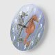 Auf dieser blauen Uhr schwimmen bezaubernde Meerpferde den ganzen Tag lang mit weißen Zahlen, die man nach Belieben entfernen kann.