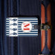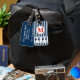 Dieses Design am Meer umfasst ein weißes Band von marineblauen Meerpferden über ein marinebrandiges und blassgraues Streifen Muster. Personalisieren Sie Ihre Monografie und Kontaktinformationen.