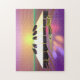 Puzzle für Musikliebhaber mit meinem surrealen Bild von Klaviertasten, die auf dem Wasser schweben, mit Sonne, Rosa und lila Tönen.
