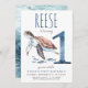 Feiern Sie einen besonderen ersten Geburtstag mit unserer Sea Turtle First Birthday Einladung! Diese Einladung mit einer wunderschönen Meeresschildkröte, die anmutig im Ozean schwimmt, erweckt den Charme eines Abenteuers unter dem Meer. Personalisieren Sie sich mit Ihren Party-Details und beginnen Sie mit dieser bezaubernden Einladung eine Reise der Freude und Entdeckung!