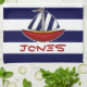Dieses niedliche und trendy Küchentuch hat Segelboote auf einem Hintergrund der Marine und der weißen horizontalen Streifen. Es ist ein großer Zusatz zu Ihrem Zuhause-, Boots- oder Strandhausdekor. Fertigen Sie mit einer Namen- oder Monogramminitiale besonders an.