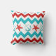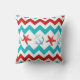 Seestrand-rote aquamarine Zickzack AnkerStarfishthrow-Kissen zentrierten im Freienmit Rot und Zickzack Streifen des Türkises mit aquamarinen Türkisblauankern und hellen roten Starfish mitten in dem Zickzack Muster. Groß für den Strandhausdekor oder heraus durch das Pool.
