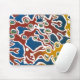 Mousepad mit einem Screenshot-Design von Algen in Gold, Maron und Grün auf blauem und weißem Hintergrund