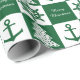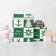 Nahtlos, die vektorgraphik wiederholend, die an den Weihnachtsgrünen und weißen Farben mit Anker nautisch ist, drehen sich Schiffe und Weihnachtsbaummuster. Kundengerecht: Sie können jede mögliche andere Hintergrundfarbe anstelle des Grüns wählen. Addieren Sie Ihren Namen, redigieren Sie oder löschen Sie Text.
