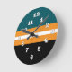 Diese aquamarine, orangefarbene, schwarz-weiße Uhr wird sich sicher von selbst überzeugen. Die großen, mutigen Zahlen machen das Zeiterzählen sehr einfach.