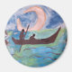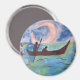 Tauchen Sie ein in den Zauber und das Geheimnis des Mondlichts mit dieser wunderschönen Aquarell. Die in sanften Pastellfarben gestrichenen zwei unerschrockenen Reisenden steuern vor dem Hintergrund des Nachthimmels und eines riesigen Halbmondes in eine ruhigere Zukunft. Grün, Blau, Braun und Silber verbinden sich zu einem warmen und schönen Bild, das jedem Zimmer Licht verleiht.