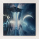Eine ruhige Nachtszene mit einem Segelboot, das unter einem großen, halbmondförmigen Mond über dem Himmel über einem ruhigen Meer segelt, das sich durch die glänzende Oberfläche des Wassers widerspiegelt