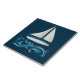 Ein einfaches Segelboot reitet auf einem marineblau-blauen Hintergrund eine Schachtwelle.