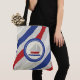 Eine elegante rote, weiße, blaue und graue Tasche, die überall hin geht. Gedruckt mit fett diagonalen Streifen und ein einfaches Segelbootbild in den gleichen Farben. Ihre Wahl von zwei Größen und Stilen. Es gibt noch weitere Picknickthemen in dieser Kollektion.