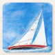Segelboot mit Crew Krängung auf hoher See in Aquarellkunst.