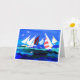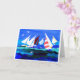 Eine allgemeine Grußkarte mit den Segelbooten, hergestellt von einer handgemalten Papiercollage. Links freier Raum für Ihre eigene Mitteilung. Sehen Sie auch zusammenpassende Geschenke.