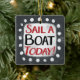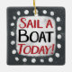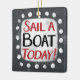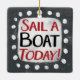 "Sail A Boat Today" ist ein niedliches Textdesign in Grau mit schwarzem und rotem Text. Er sitzt auf einer weißen Akzent-Form und niedliche weiße Polka-Punkte, die ihn umgeben.