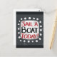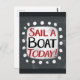 "Sail A Boat Today" ist ein niedliches Textdesign in Grau mit schwarzem und rotem Text. Er sitzt auf einer weißen Akzent-Form und niedliche weiße Polka-Punkte, die ihn umgeben.