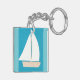 Dieser AcrylSchlüsselanhänger ist auf beiden Seiten mit meiner Beschreibung eines weißen Segelboots auf einem Türkishintergrund entworfen.