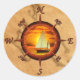 Nautical Compass Rose mit digitaler Malerei eines Segelbootes und Sonnenuntergang in der Mitte und Vintager Stil Landkarte.