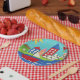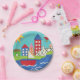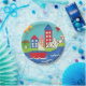 Segelboot und Heißluftballon mit Stadtbild Pappteller