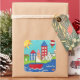 Segelboot und Heißluftballon mit Stadtbild Quadratischer Aufkleber