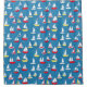Muster mit Abbildung von roten und gelben Segelbooten über blauem Hintergrund.
