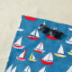 Muster mit Abbildung von roten und gelben Segelbooten über blauem Hintergrund.