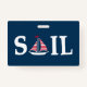 Sail Text Design Illustration mit Segelbootdekoration auf dunkelblauem Hintergrund. Es ist möglich, die Hintergrundfarbe zu ändern und das Design mit Ihrer Wahl zu ergänzen.