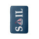 Sail Text Design Illustration mit Segelbootdekoration auf dunkelblauem Hintergrund. Es ist möglich, die Hintergrundfarbe zu ändern und das Design mit Ihrer Wahl zu ergänzen.