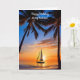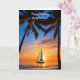 Ein Segelboot gleitet durch ein ruhiges tropisches Wasser, während die Sets und Palmen die Szene auf dieser Geburtstagskarte für Ihren Mann umrahmen. Der Gruß auf der Vorderseite kann geändert oder weggelassen werden.