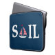 Sail Text Design Illustration mit Segelbootdekoration auf dunkelblauem Hintergrund. Es ist möglich, die Hintergrundfarbe zu ändern und das Design mit Ihrer Wahl zu ergänzen.