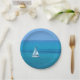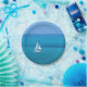 Weiße Segel gegen ein absolut Türkismeer. Das Hinausgehen auf das Wasser in einem Segelboot unter einen wolkenlosen blauen Himmel ist ein Seerezept während eines perfekten Tages.